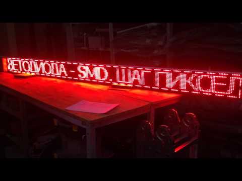 Бегущая строка 256х16 см. Достаточно вытянутое изделие, отличающееся большой буквенной ёмкостью. Идеально подходит для вывода длинных информационных сообщений. Может использоваться и как динамически броский носитель, привлекающий внимание, при трансляции на нём анимационных роликов либо gif файлов. Сочетание текста вместе с анимацией усиливает эффективность использования данного светодиодного табло. Естественно, любая анимация должна быть адаптирована под разрешение экрана в 256х16 пикселей. При грамотном использовании текста и эффектов обработки информации может стать вывеской с высокой эффективностью рекламного воздействия. Также не стоит забывать, что табло может быть сегментировано на несколько зон. К примеру, в одной его части можно выводить информацию в режиме дата и время, а в другой, непосредственно текстовый контент. Таких зон может быть и 3, если, как вариант, вы дополнительно поставите на эту строку датчик температуры, что усилит информационную привлекательность носителя!