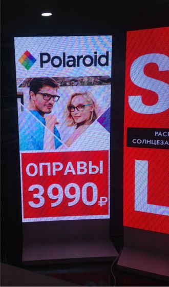 Светодиодный пилон (видеостойка). Видеополе 960х1600 мм. RGB. P4 (шаг пикселя 4 мм). Внешние габариты конструкции 960х1920 мм.